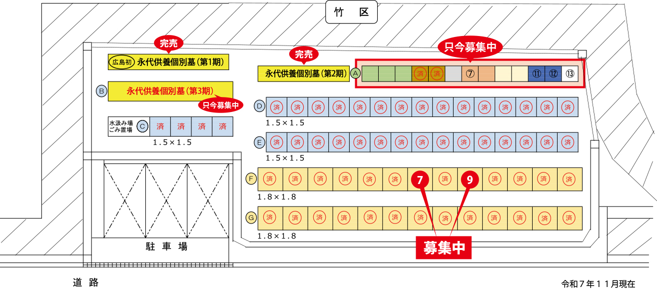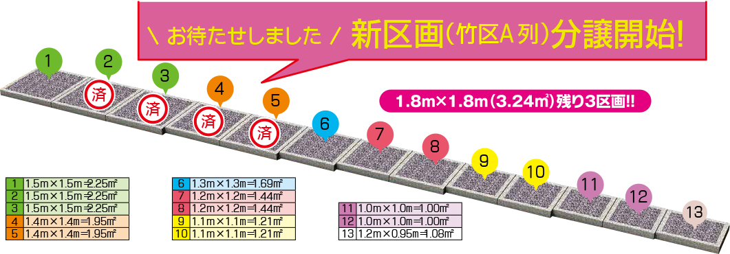 | 永代使用料 | 50.4万円/区画~ (1.2X1.2=1.44㎡区画~) |